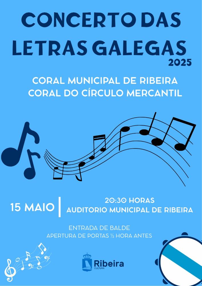 Luis Pérez Barral, alcalde de Ribeira, ten o pracer de convidalo ao concerto da Coral Municipal de Ribeira e da Coral do Círculo Mercantil, que terá lugar o vindeiro xoves 15 de maio, ás 20:30 h no auditorio municipal. Ao rematar cantarase conxuntamente polas corais e o público asistente o Himno Galego e servirase un pequeno ágape para coralistas e corporación no Kukua. Agradecemos a súa presenza no acto así como si é posible a confirmación de asistencia.