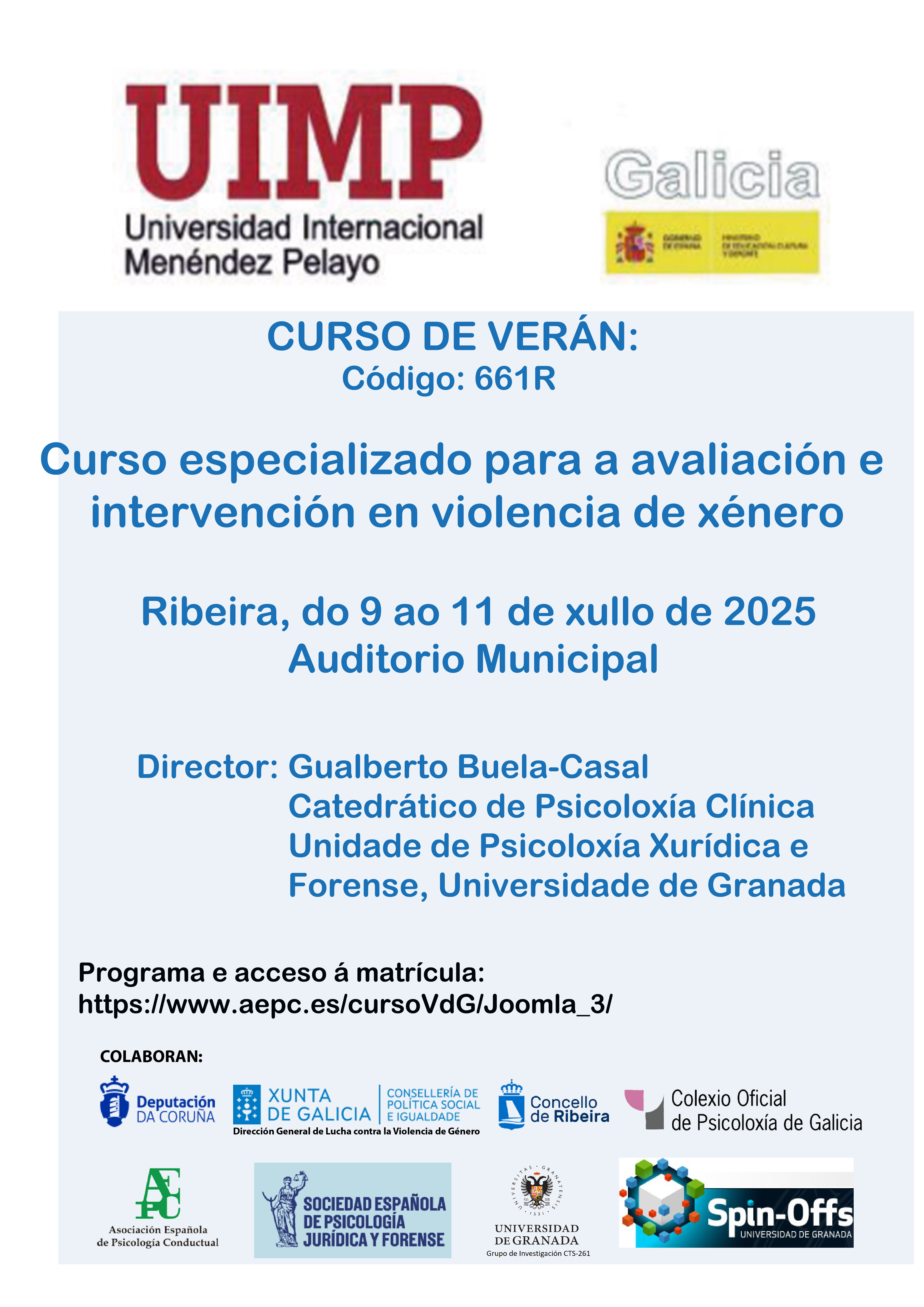 Bajo la dirección del catedrático Gualberto Buela Casal, Ribeira vuelve a ser el centro neurálgico del estudio en materia de violencia de genérenlo. Desde el catedrático de Medicina Legal, Ángel Carracedo, hasta la comandante María José Garrido Antón, jefa del área de Violencia de Género de la Secretaría de Estado de Seguridad, una docena de personas estudiosas y destacadas por su excelencia compartirán sus conocimientos en esos 3 días en Ribeira.