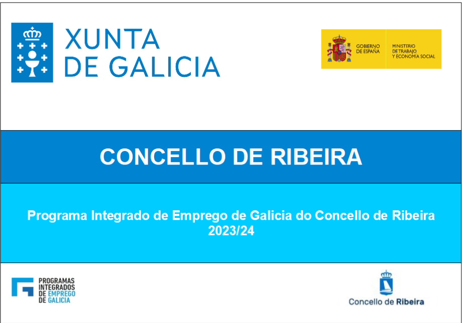 Programa Integrado de Empleo de Galicia del Ayuntamiento de Ribeira 2023/2024 Whatsapp: Programa Integrado de Empleo de Galicia del Ayuntamiento de Ribeira 2023/2024 Fecha 07 diciembre 2023 Programa integrado de empleo cuyo objetivo es mejorar la empleabilidad y las posibilidades de inserción laboral de las personas demandantes de empleo, por medio de acciones complementarias de orientación, formación e intermediación laboral. Documentos INFORMACION COMPLETA DO PROGRAMA INTEGRADO DE EMPREGO DO CONCELLO DE RIBEIRA (pdf 345 kB)