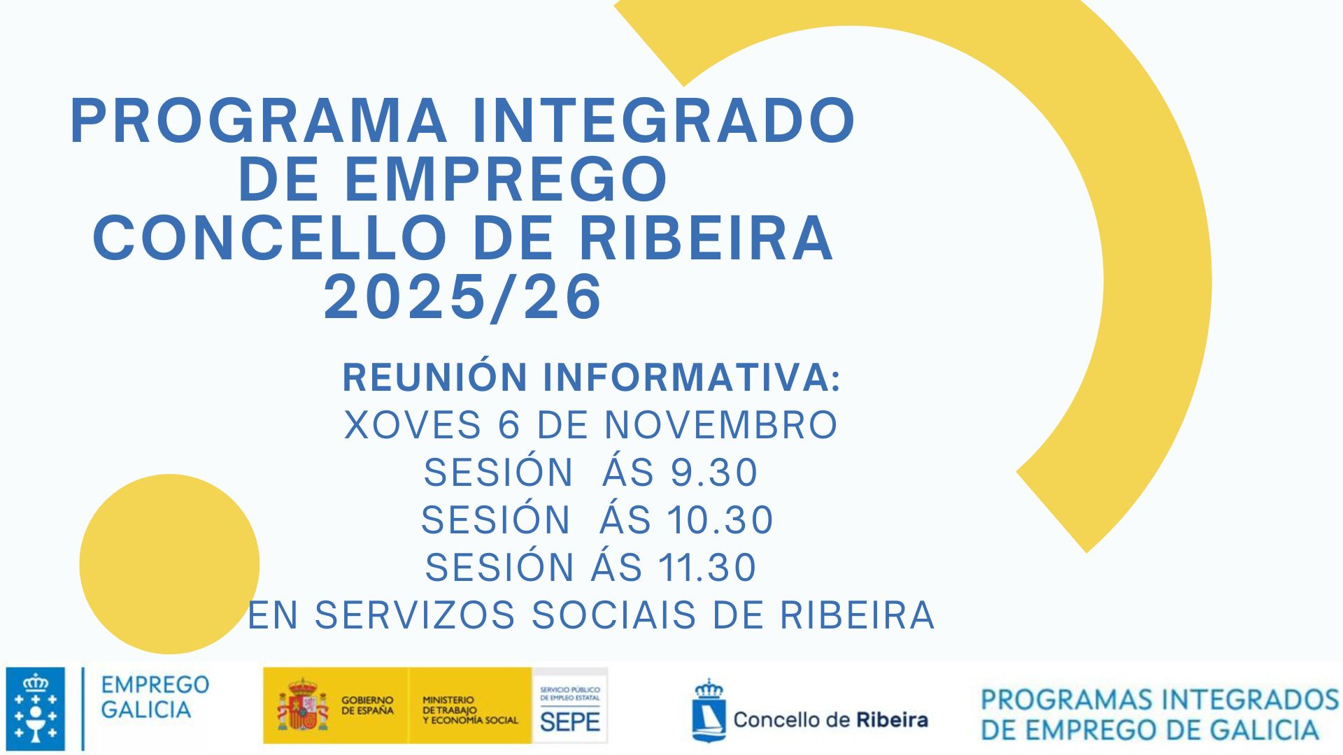 Ao longo destas semanas xa se desenvolveron varias reunións informativas; unhas xuntanzas que seguen no vindeiro 4 e 5 de novembro, ás 10.00 e ás 12.00 horas, no Viveiro de Empresas de Ribeira; e no 6 de novembro, con tres encontros en Servizos Sociais de Ribeira: ás 09.30, ás 10.30 e ás 11.30 horas.