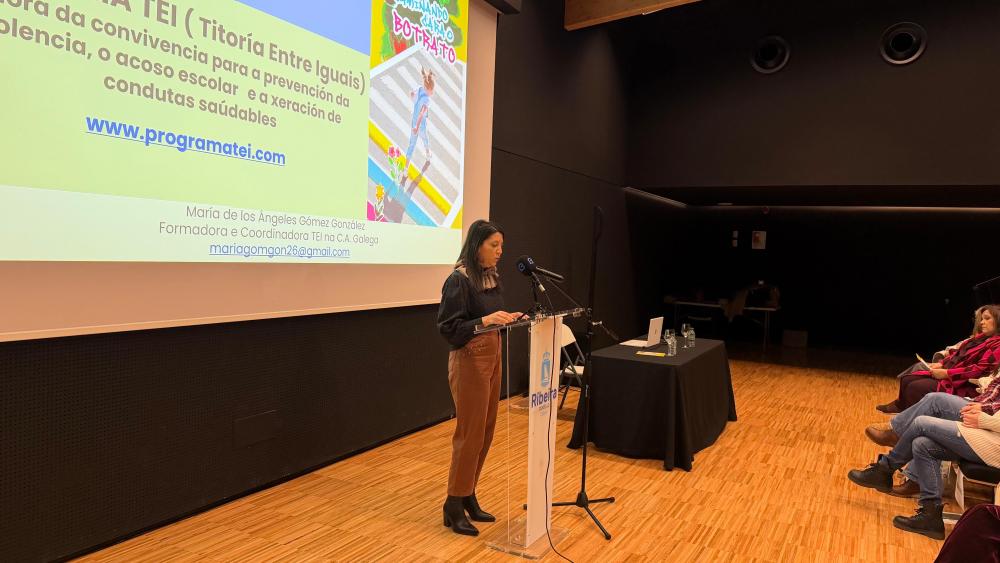 A alcaldesa de Ribeira, María Sampedro, participou onte na apertura da segunda edición das Xornadas Interprofesionais para o BoTrato á infancia e á adolescencia que se desenvolven durante os días 11 e 12 de decembro, na sala polivalente do novo Auditorio municipal, da man do Departamento de Servizos Sociais Comunitarios.