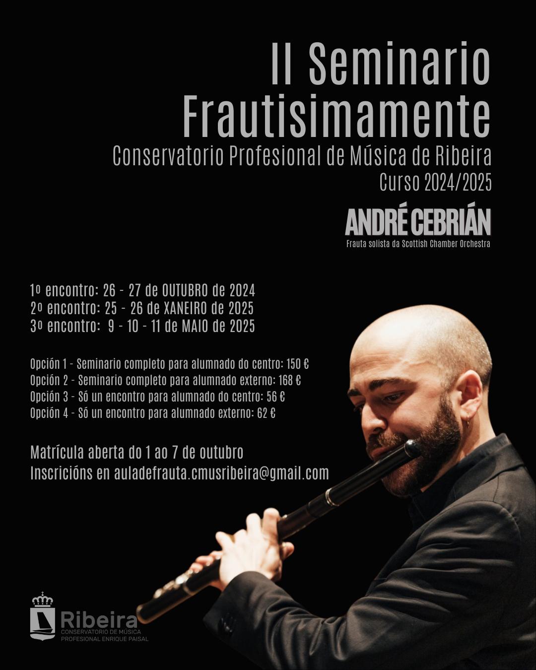 Matrícula abierta del 1 a 7 de octubre Inscripciones en auladefrauta.cmusribeira@gmail.com