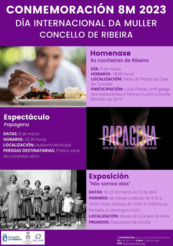 Por outra parte, o 8-M traerá por primeira vez unha ópera a Ribeira. O espectáculo terá lugar o propio mércores a partir das 20.30 horas no Auditorio, con entrada libre ata completar aforo. A función chámase “Papagena” e trátase dunha ópera contemporánea de Iago Hermo en clave de igualdade.
