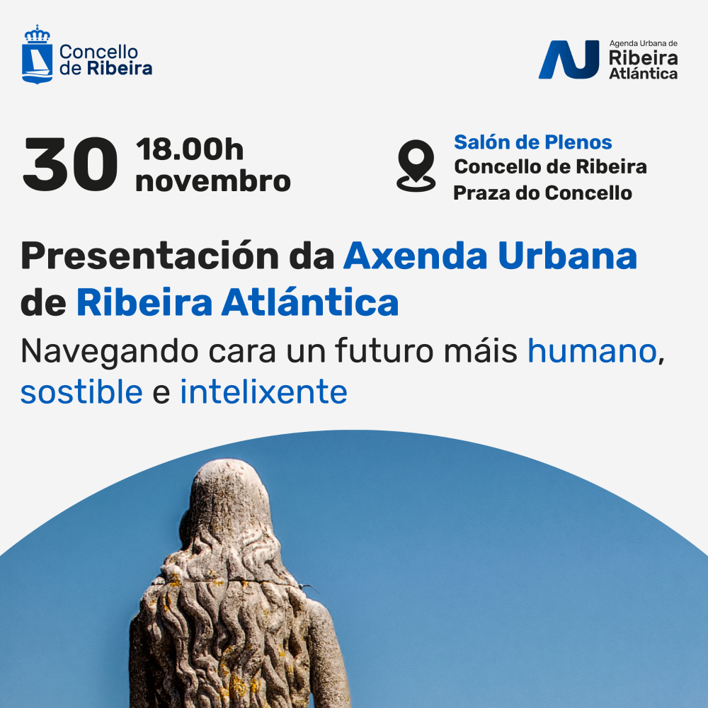 O Concello de Ribeira presentará o mércores, 30 de novembro, a primeira proposta do seu Plan de Acción da Axenda Urbana. O proceso baséase na construción dunha Ribeira máis sostible e intelixente, que mire aos seus cidadáns para enfrontarse aos retos que ten por diante.