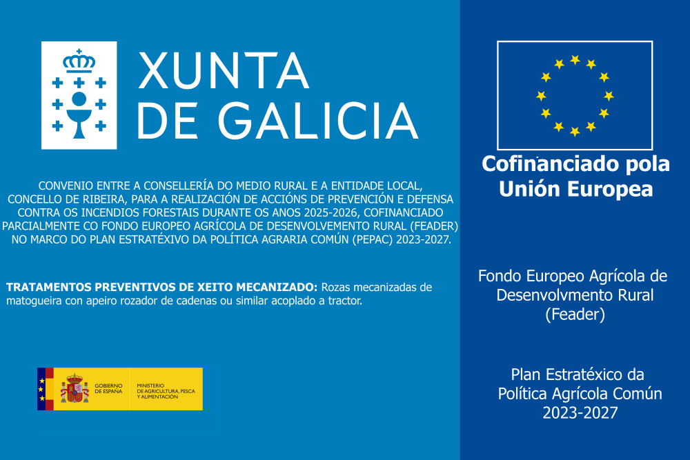 CONVENIO ENTRE A CONSELLERÍA DO MEDIO RURAL E A ENTIDADE LOCAL, CONCELLO DE RIBEIRA, PARA A REALIZACIÓN DE ACCIÓNS DE PREVENCIÓN E DEFENSA CONTRA OS INCENDIOS FORESTAIS DURANTE OS ANOS 2025-2026.