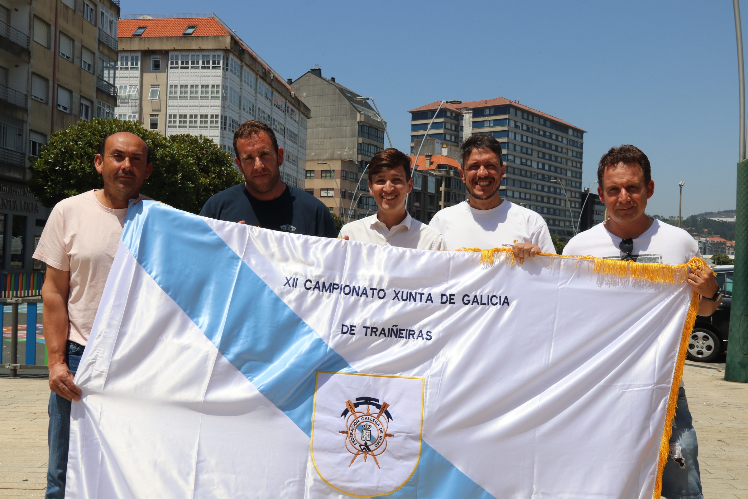 Ribeira 30 de maio de 2025. —- O Campionato Galego de Traiñeiras celebrarase na parroquia ribeirense de Aguiño os días 7 e 8 de xuño, así o anunciaron hoxe o alcalde de Ribeira, Luís Pérez, o concelleiro de Deportes, Xabier Vidal, o concelleiro de Mar, Fernando Abraldes, o representante da Federación Galega de Remo, Gustavo Vázquez e o presidente do Club de Remo Náutico de Ribeira, Jesús Silva.