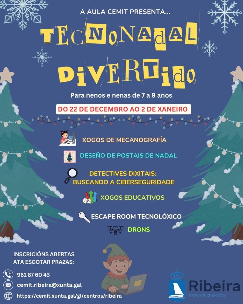 Dunha banda está o TecnoNadal divertido, de 09.30 a 11.00 horas, dirixido a nenos e nenas de 7 a 9 anos que se converterán en elfos tecnolóxicos. Terán ocasión de descubrir a maxia da tecnoloxía xogando e de maneira creativa, potenciándose así a súa imaxinación durante as vacacións. Este obradoiro consta de xogos de ordenador e mecanografía, deseño de postais de Nadal con Canva, drons, escape room tecnolóxico ou detectives dixitais, entre outras cuestións.