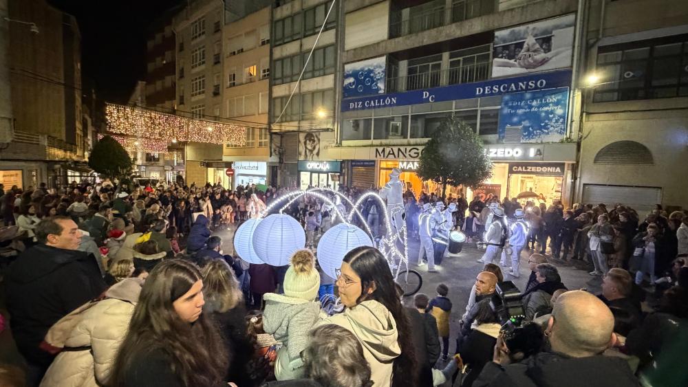 O público congregado puido gozar de chocolate con churros para quecer o corpo e tamén se dinamizaron as contornas dos establecementos locais e hostaleiros co espectáculo itinerante A luz do Camiño, de Troula Animación, para xa dar paso á charanga BB+.