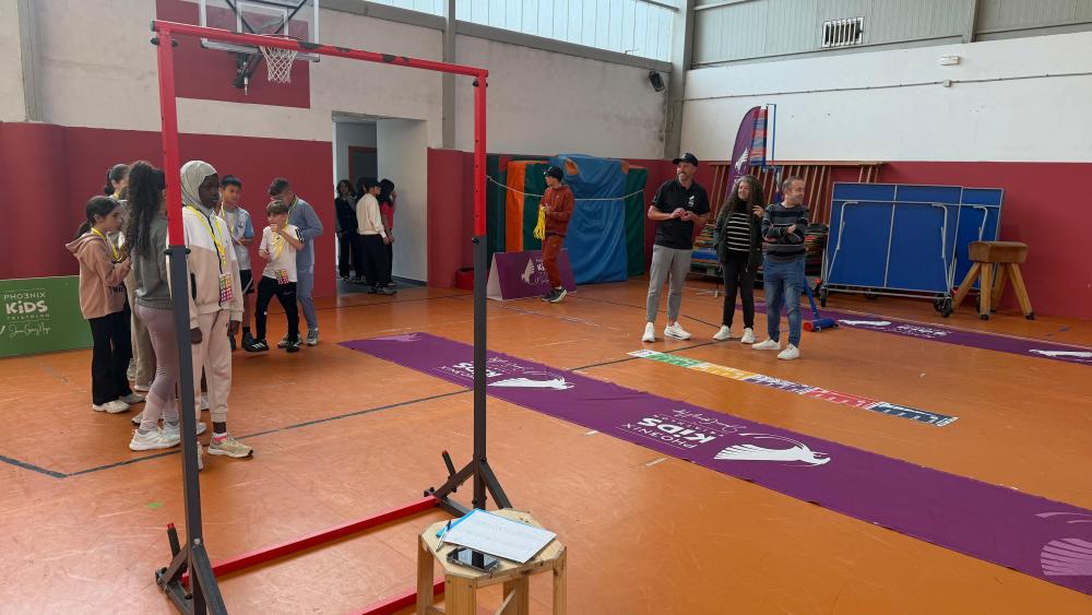 Máis de 190 estudantes de 3° a 6° curso de Primaria do CEIP O Grupo practicaron onte deporte dentro do proxecto Phoenix Kids by Javier Gómez Noya que promove a actividade física e o triatlón entre os máis pequenos.