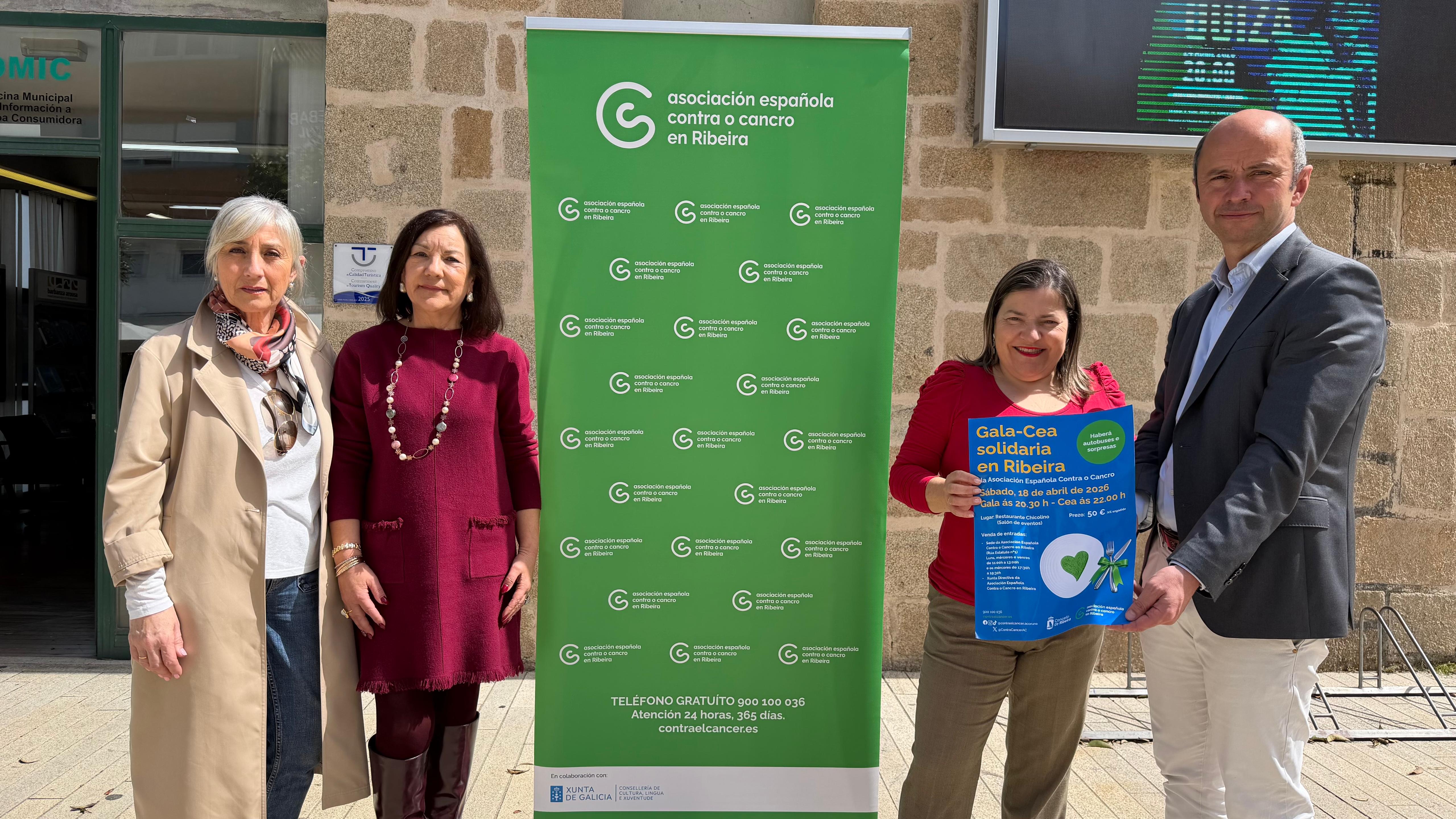 A xunta local da Asociación Española Contra o Cancro de Ribeira celebrará no sábado, 18 de abril, a súa tradicional gala-cea na que se homenaxearán a persoas e entidades e que contará con máis de 500 asistentes, polo que se logran recadar arredor de 14.000 euros. A gala comezará ás 20.30 horas, seguida da cea, ás 22.00 horas, no salón de eventos do restaurante Chicolino. Neste ano, o recoñecemento recaerá no deportista Juan Luis Martínez Queiruga, na Asociación Cultural Barbantia e no doutor Luis Ángel León Mateos.