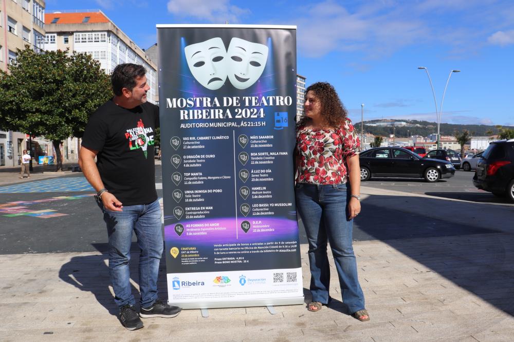 A concelleira de Cultura, Antía Alberte e o Dinamizador Cultural do concello, Unai González presentaron a Mostra de Teatro de Ribeira que é unha das propostas estrela da concellería de Cultura cada outono e que nesta ocasión contará cun total de 13 actuacións, das que 12 serán con bono ou entrada e unha, a do grupo municipal de teatro que abre a mostra co seu espectáculo “Criaturas”, será con entrada de balde o venres 20 de setembro.