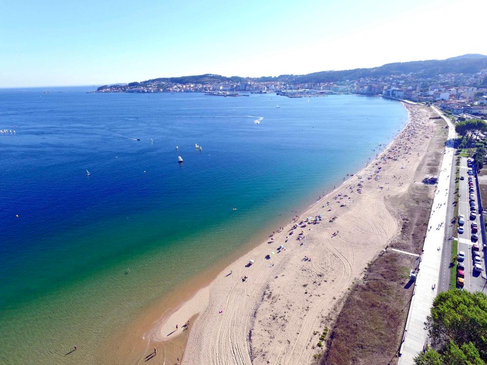 Perfecto paseo con vistas. Con vistas á un fermoso areal de area fina de 2 km de longo con bandeira azul, con todo tipo de servizos e coa comodidade de estar moi preto dun entorno urbano mentres gozamos relaxadamente dunha fantástica estampa da ría de Arousa.