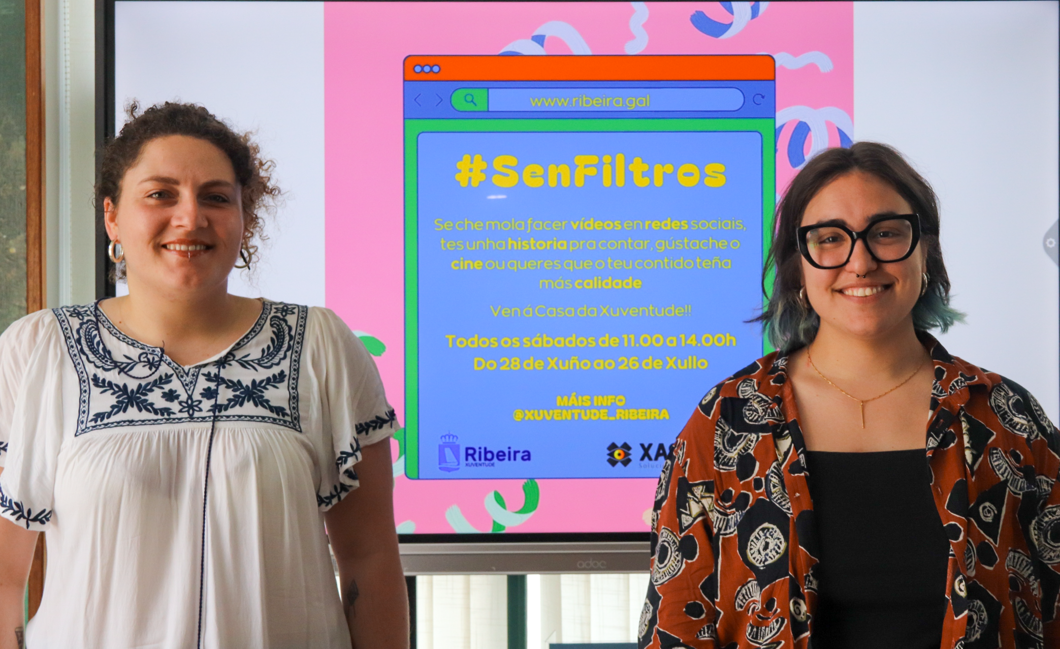 A concelleira recordou que na semana pasada se presentaron as actividades deportivas para o público xuvenil e as escolas náuticas cuxas bases xa están publicadas na web e as inscricións xa están abertas; “e hoxe, presentamos esta nova actividade chamada #SenFiltros que serán seis xornadas de obradoiros audiovisuais que sen van a desenvolver tódolos sábados pola mañá na Casa da Xuventude a partir do vindeiro sábado 28 de xuño; as inscricións poden facerse a través das redes sociais de Xuventude (Instagram e Facebook) e tamén no correo xuventude@ribeira.gal”, informou a concelleira que finalizou animando á mocidade a apuntarse aos obradoiros audiovisuais.